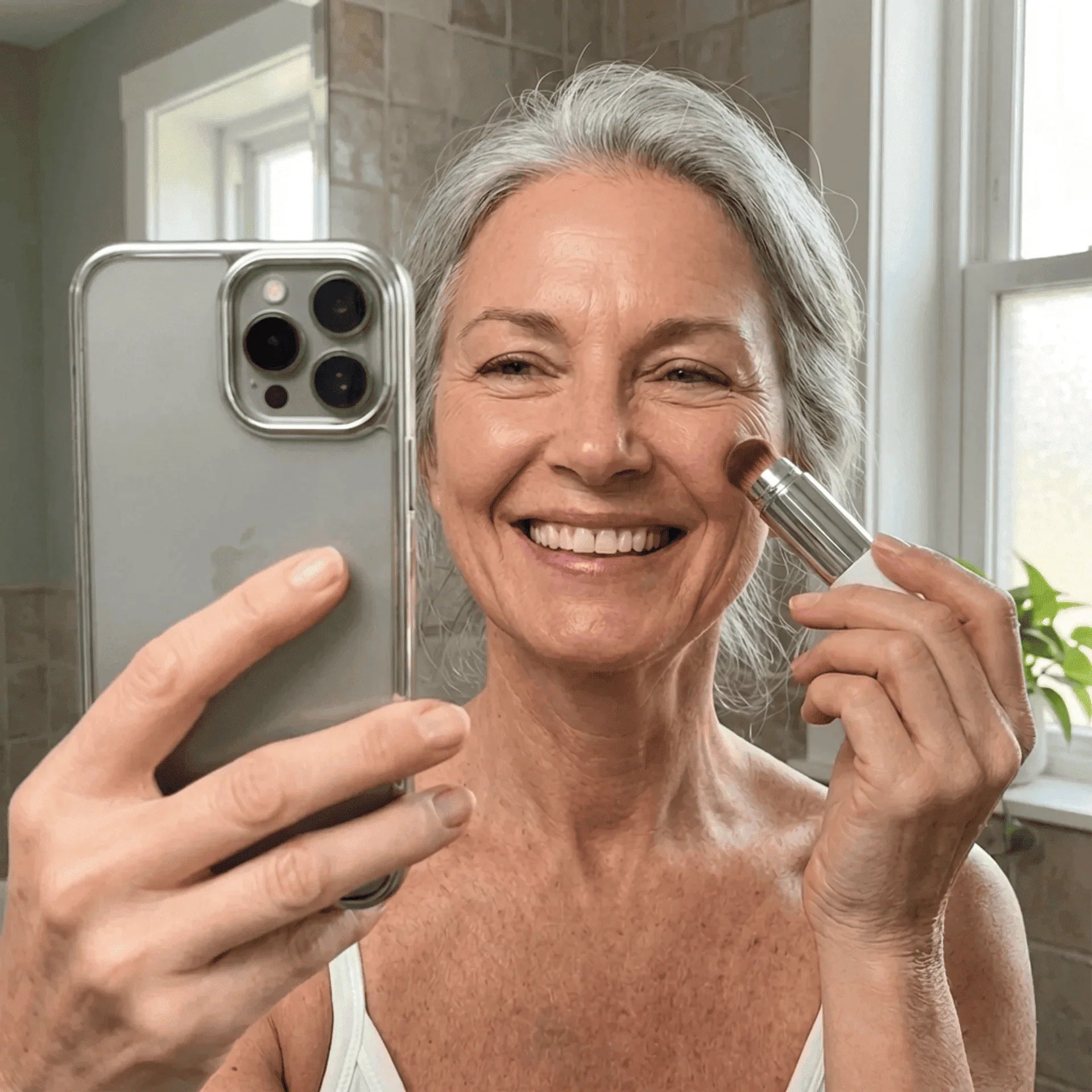 “Finally, a foundation that doesn’t feel like I’m wearing makeup. I’ve always hated the heavy feel of foundations. This one applies white, blends into my skin tone, and stays ultra-light. My skin looks smooth and radiant, without that cakey effect."
