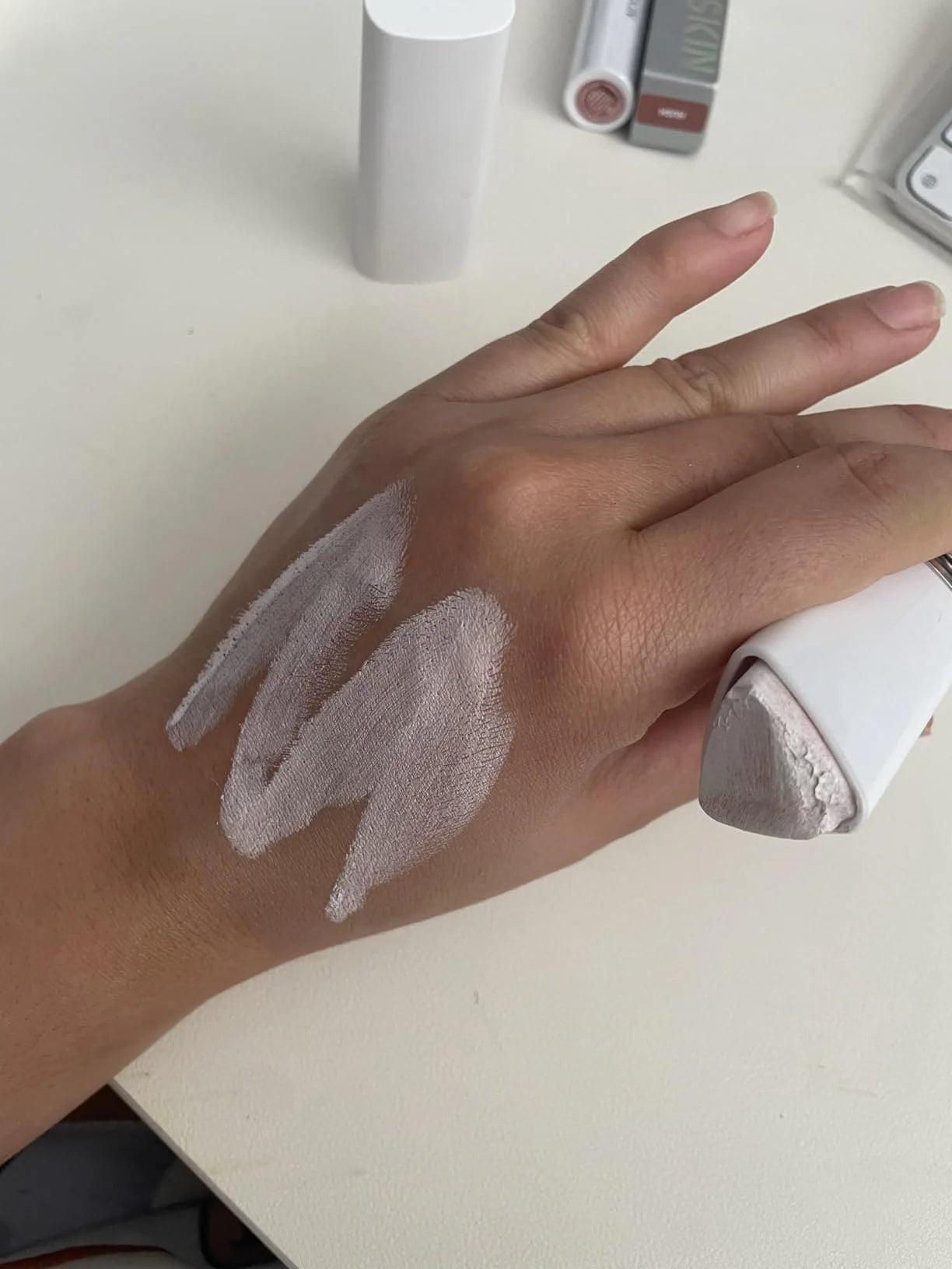 The white cream surprised me at first, but once blended, the colour matches my skin perfectly. The finish is very natural.